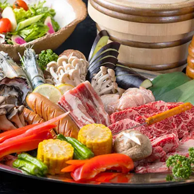 豪快にBBQスタイルでグリルしてアツアツの美味をお楽しみ頂くプレミアムBBQセット、イタリアンに和食のエッセンスを加えた総料理長おススメのレストランディナーコース、名物のひなせかきを味わう期間限定の牡蠣鍋コース、いずれも岡山のこだわりの美味をふんだんに使用した食事内容となります。